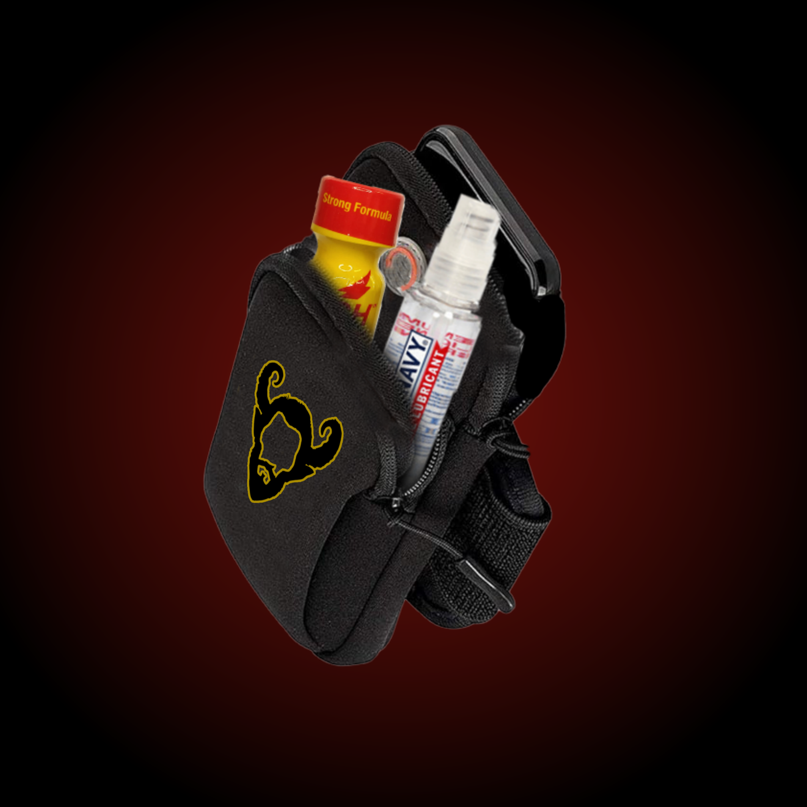 Essentials Arm Bag to carry your phone, lube, poppers and other necessary “goodies” to power through the night. Don’t be the messy guy who cant find his “stuff” when needed the most! Stay organized and ready. Two zippered pockets securely store your items. Crafted from high-quality sweat resistant neoprene.